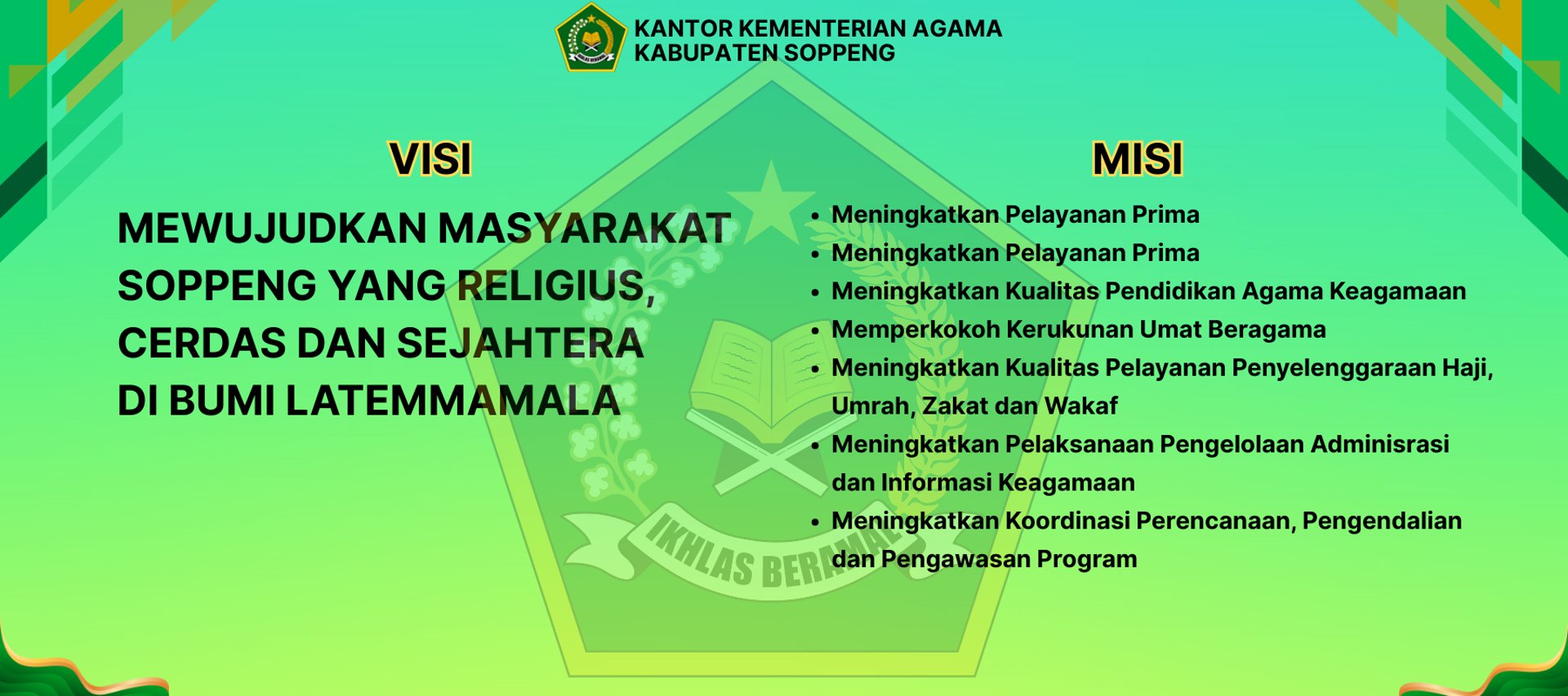 Keberadaan Kantor Kementerian Agama Kabupaten Soppeng adalah salah satu instansi yang melaksanakan tugas pemerintahan dan tugas pembangunan dibidang keagamaan yang menjadi acuan bagi seluruh jajaran Kantor Kementerian Agama Kabupaten Soppeng dalam melaksanakan kegiatan, sekaligus tolak ukur dalam pencapaian Visi dan Misi yang telah dirumuskan.