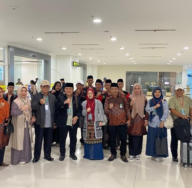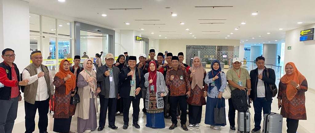 Kepala Kantor Kemenag Kabupaten Soppeng, H. Afdal, didampingi Ketua Dharma Wanita Persatuan Ny. Hasniati Afdal, Kepala Seksi PD Pontren Hj. A. Barlian Dulung, bersama sejumlah panitia LO dari Kemenag Soppeng, menyambut langsung kedatangan Kafilah Provinsi Bengkulu di Bandara Sultan Hasanuddin Makassar, Rabu (1/10/2025).